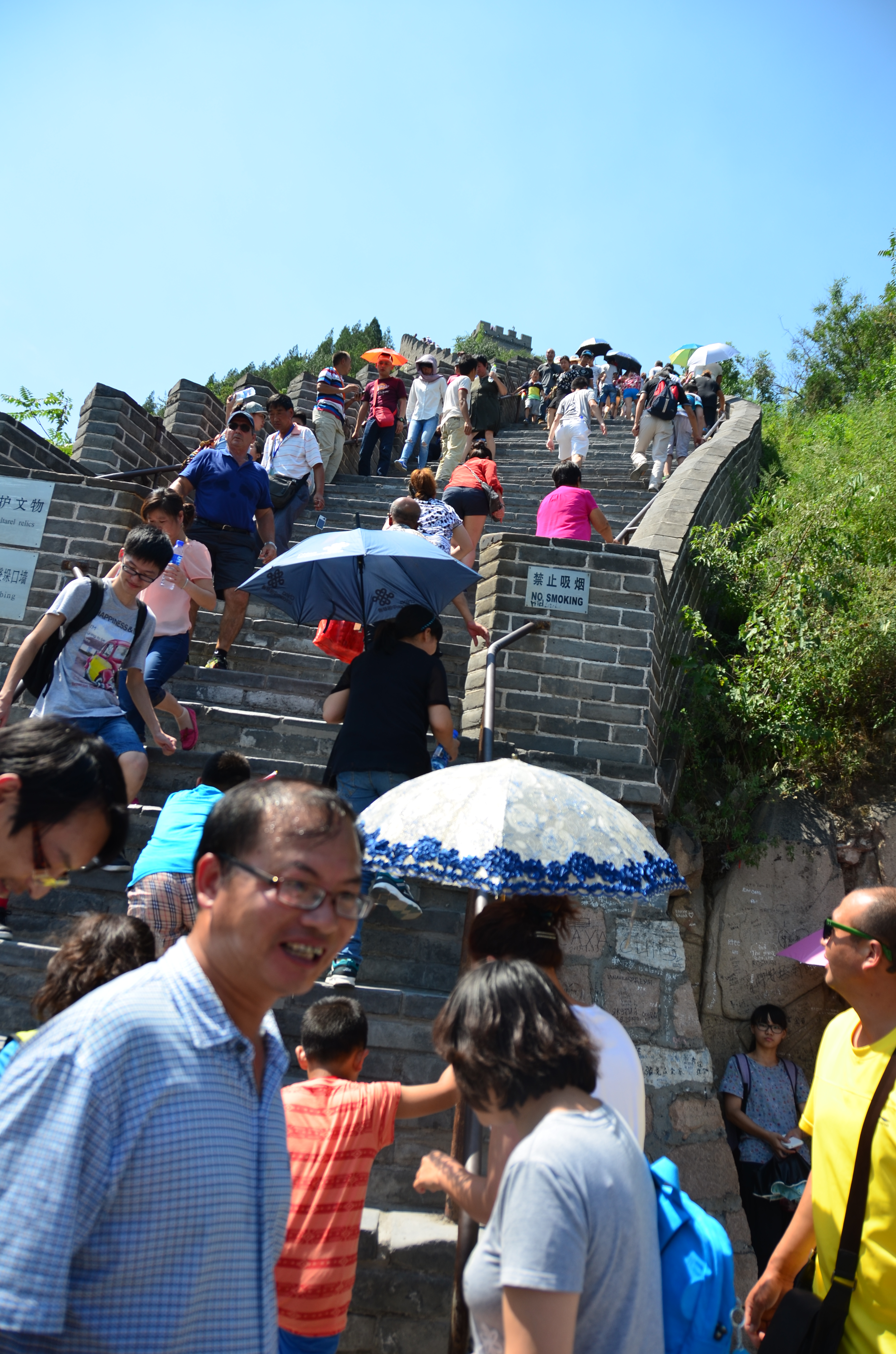 Entramos pela porta Juyongguan. Era sábado, e não saímos cedo do hotel (estávamos exaustas dos últimos dias de trabalho), então pegamos um engarrafamento gigantescamente chinês na estrada que leva até lá. Elegemos esta entrada porque era a mais próxima de Pequim.