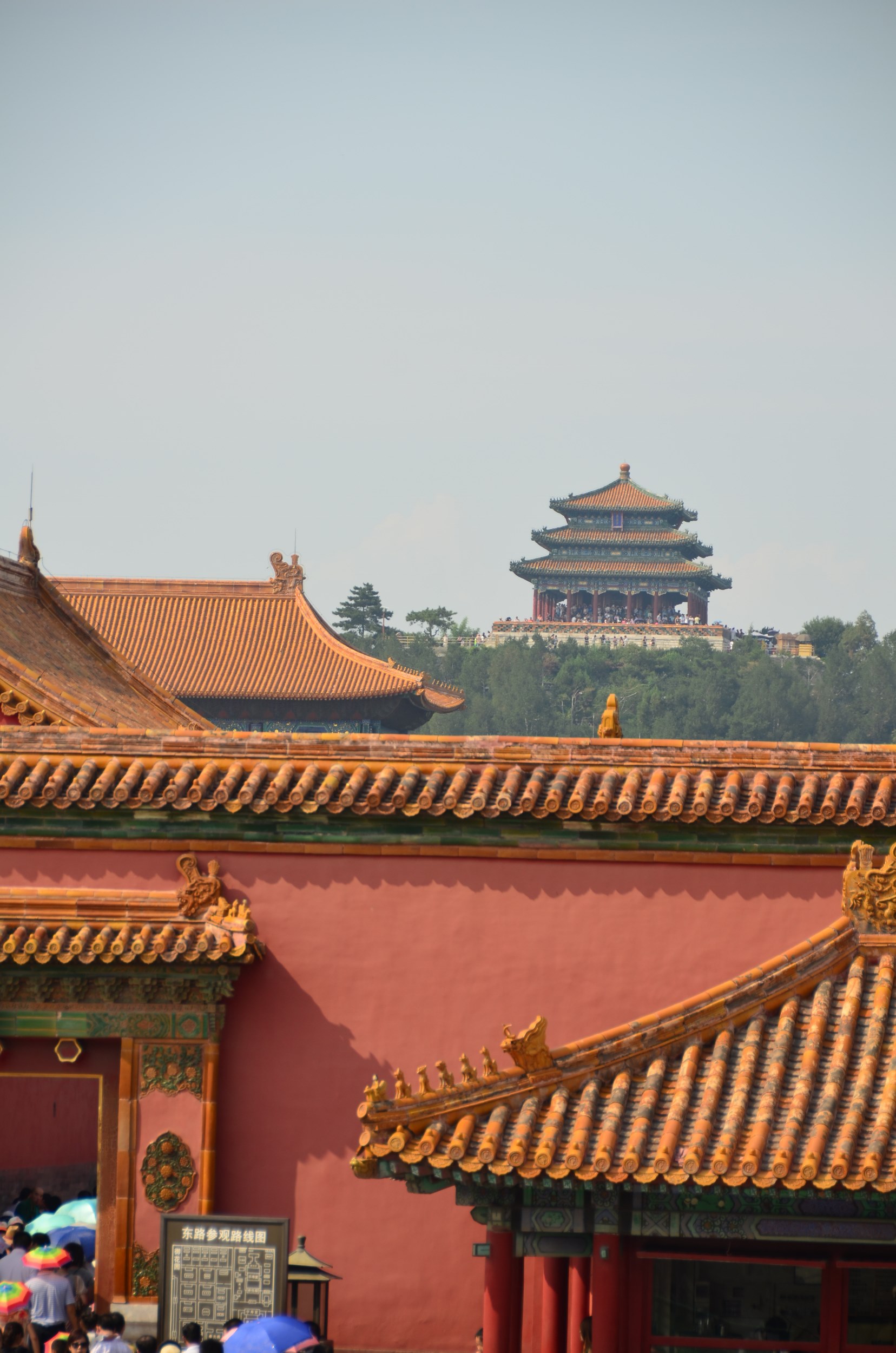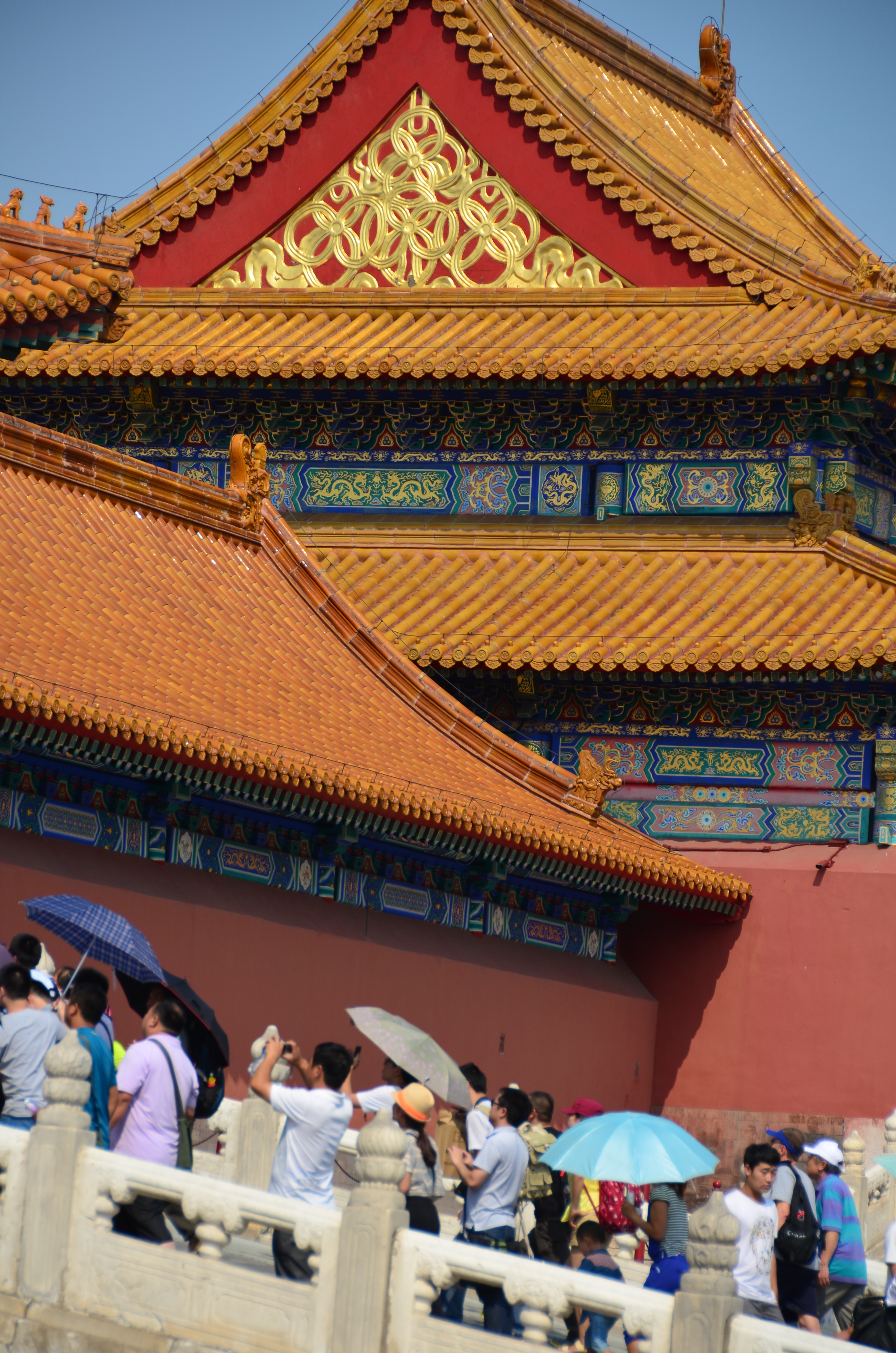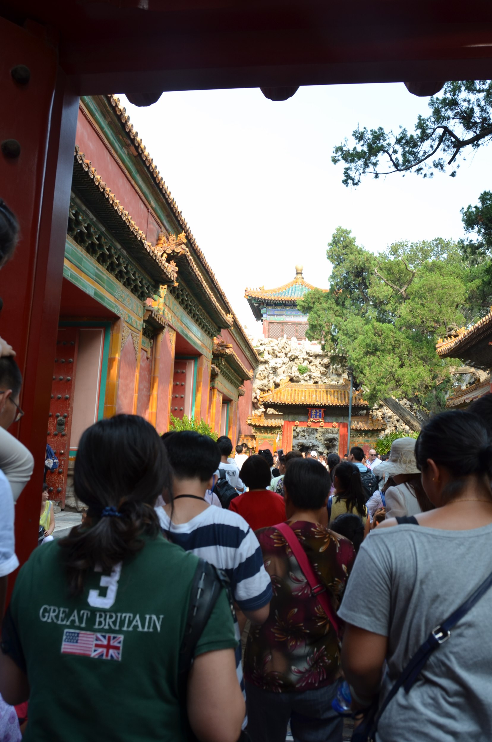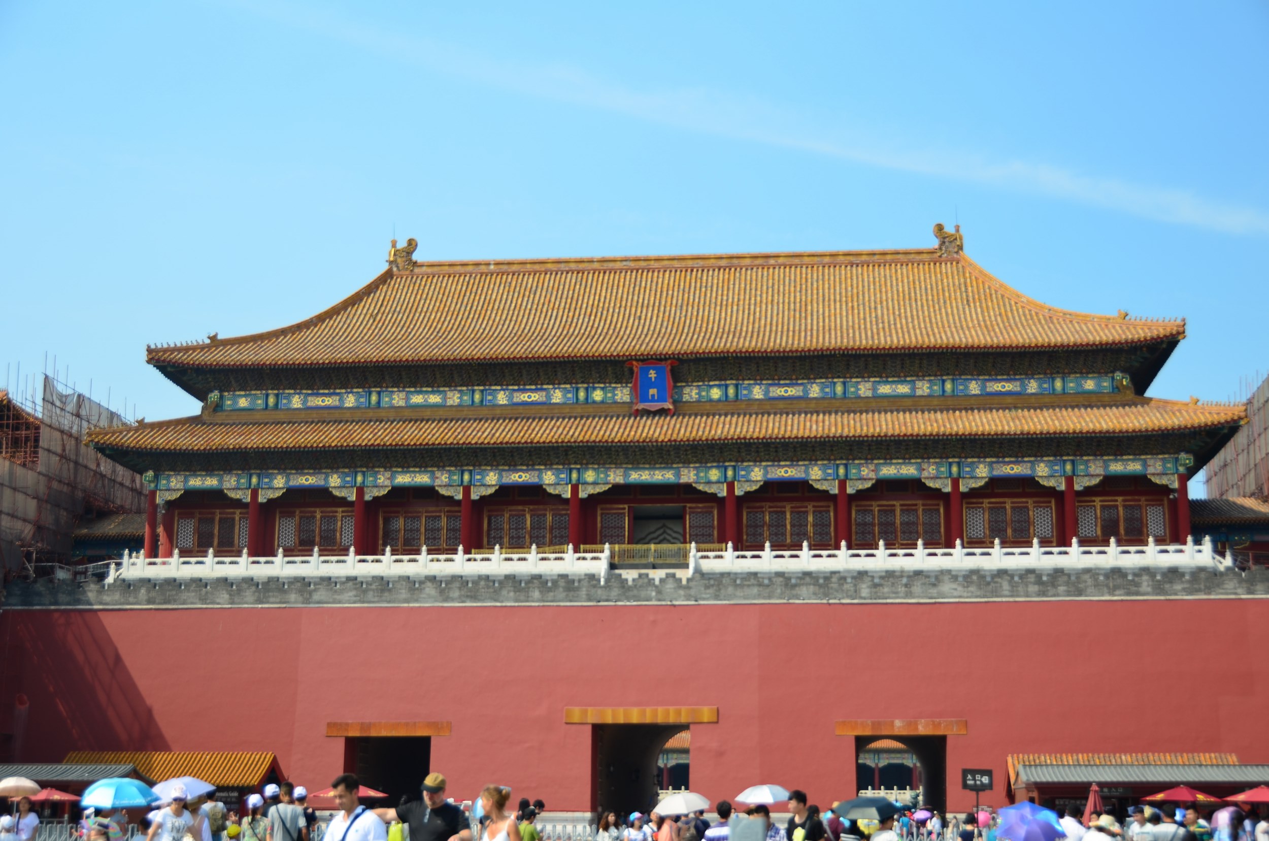 Não sei como, mas decidimos visitar a Cidade Proibida logo após a Grande Muralha – eu falei que não tínhamos saído cedo do hotel, né? Pois chegamos na Cidade lá pelas 3h da tarde, sem almoço. Eu dificilmente faria uma combinação assim se estivesse uma viagem “minha”. Mas estando a trabalho, e tendo apenas o final de semana livre, foi o possível. É muito cansativo, muito mesmo, principalmente no verão escaldante de agosto, mas não é impossível.