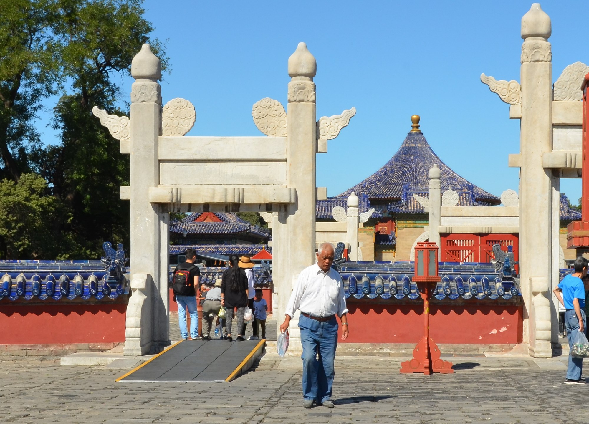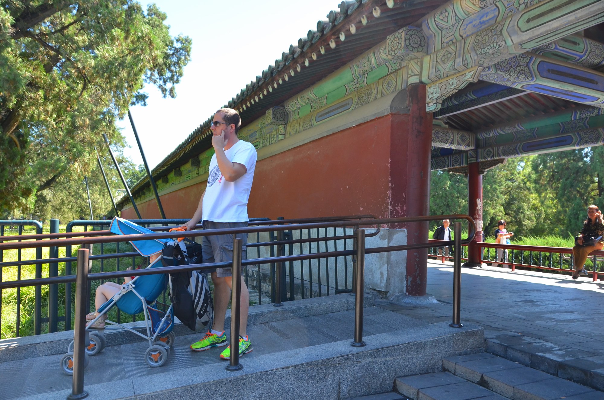 Dos parques que visitamos, o mais preparado para a acessabilidade é o Parque do Céu. Tem rampas em “quase” todas as escadarias. Não tem rampa, contudo, para subir até o Templo principal, e algumas portas tem aquelas molduras no chão, que você – e o carrinho – precisam pular.